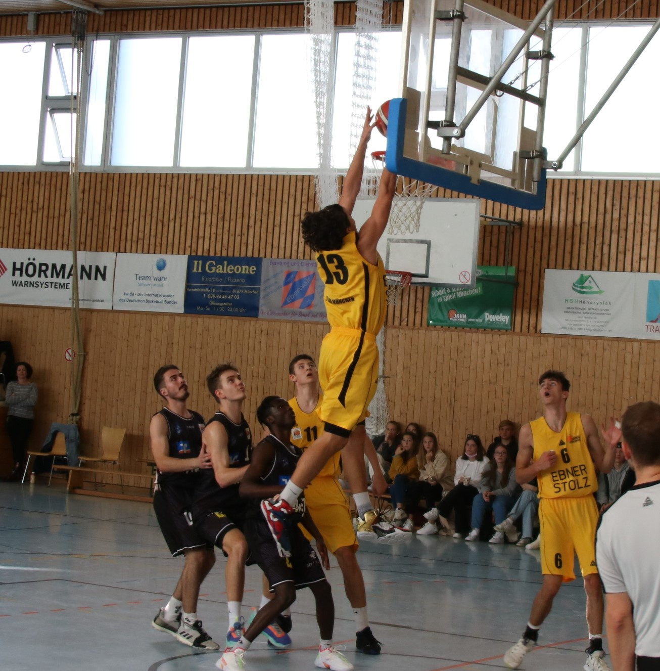 Halbzeitstand 59:37. Aber ähnliches hatten die Jahn-Junioren letzte Woche genau andersrum erlebt. Der ganz große Schwung war jetzt weg, leichtfertige Ballverluste gegen die Zonendeckung, ein besser aufdrehender Emanuel Schüler (24 Punkte) auf Gästeseite – unbekümmert war dieser Sieg nicht, die Schützlinge von Armin Sperber und Timo Heinrichs mussten bis zum Schluss konzentriert zu Werke gehen.