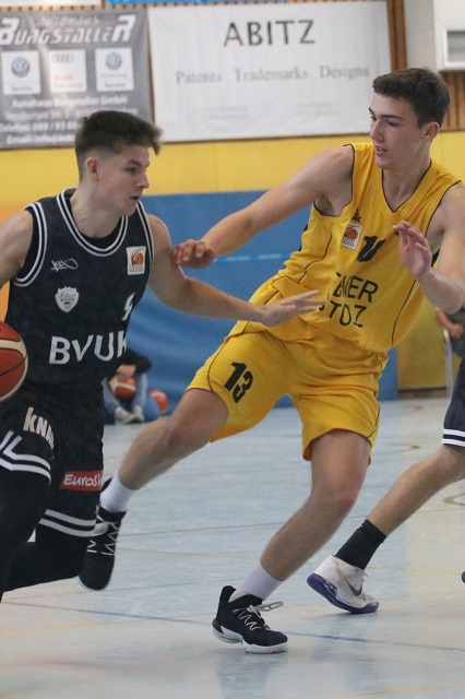 Was für ein kurioser Spieltag! In der Woche davor die kurzfristige Verlegung auf Wunsch der Gastgeber, 13 statt 15 Uhr, man zog in die ehrwürdige Halle am Ulmer Kuhberg, damit die Einheimischen die Doppelbelastung als Pro B Männer und Junioren besser wegstecken würden (haben sie dann auch, deutlicher Sieg gegen die Fraport Juniors später am Tag).