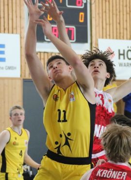 07.03 07.03.2022 15:19 von Armin Sperber NBBL Abstiegsrunde, Spiel fünf „Je weiter der Weg, desto süßer der Sieg!“ – NBBL-Jahnlinge siegen 93:76 gegen die jungen Gladiatoren mehr