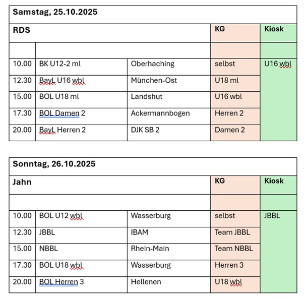 Jeweils fünf Heimspiele gibt es am Samstag (Ruth-Drexel-Schule) und Sonntag (Jahn) - und noch einige in weiteren Hallen, siehe unten: