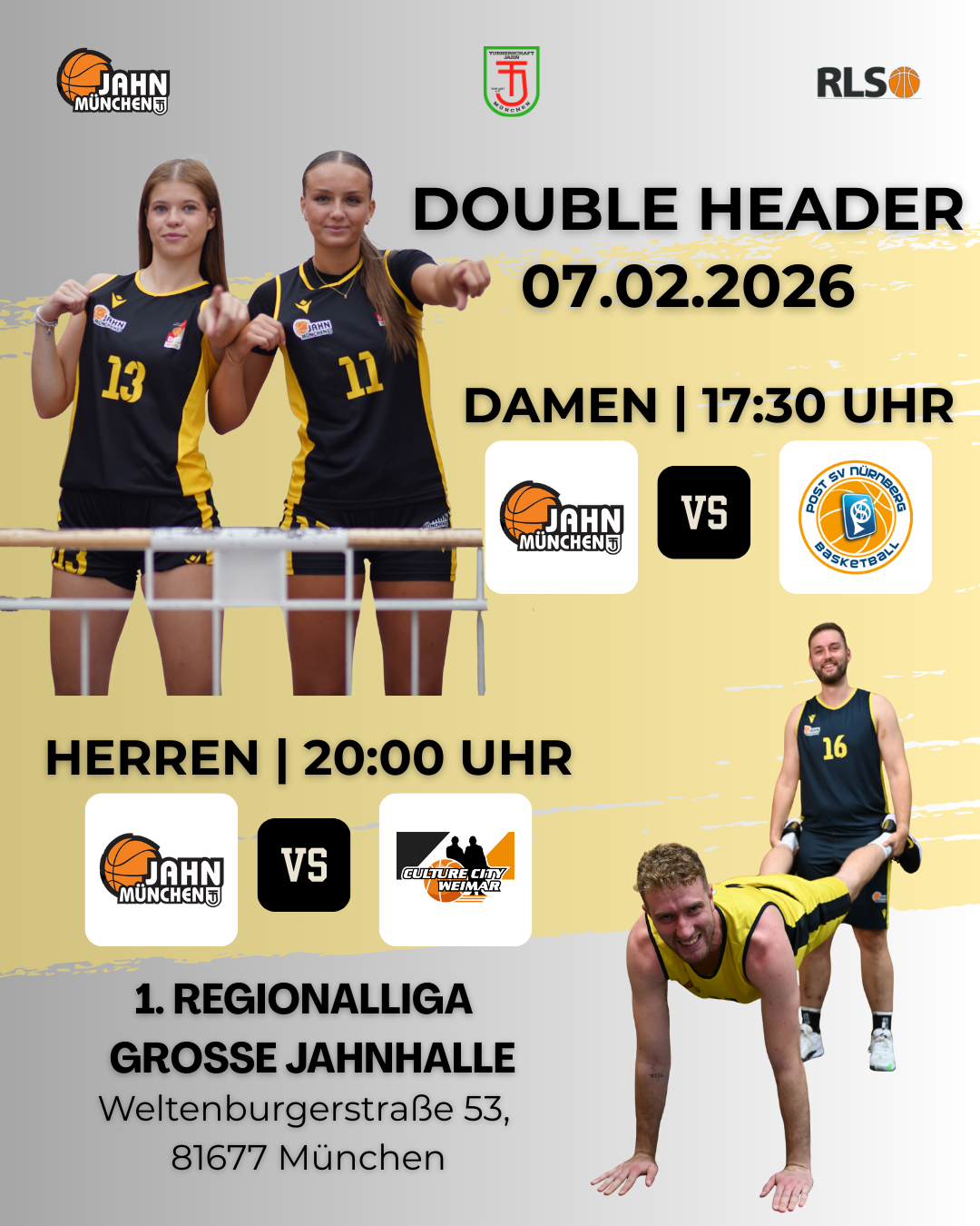 Nach dem erfolgreichen Auftakt in die Zwischenrunde der 1. Regionalliga Südost steht für Jahn München bereits das nächste Topspiel an. Am Samstag, den 07.02.2026, um 20:00 Uhr empfangen die Münchner mit Culture City Weimar den aktuellen Ligaprimus an der Weltenburger Straße – ein Duell zweier ambitionierter Teams auf höchstem Regionalliga-Niveau.