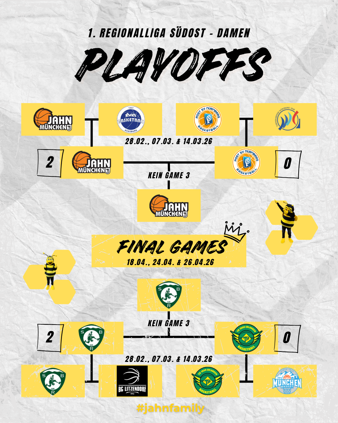 Die Damen sind Finale angekommen. Der Gegner ist Rosenheim, "auswärts/heim/heim" ist der Modus in der Best-of-Three Serie, die am 18./24./26.4. stattfindet und seit Samstag 1-0 steht