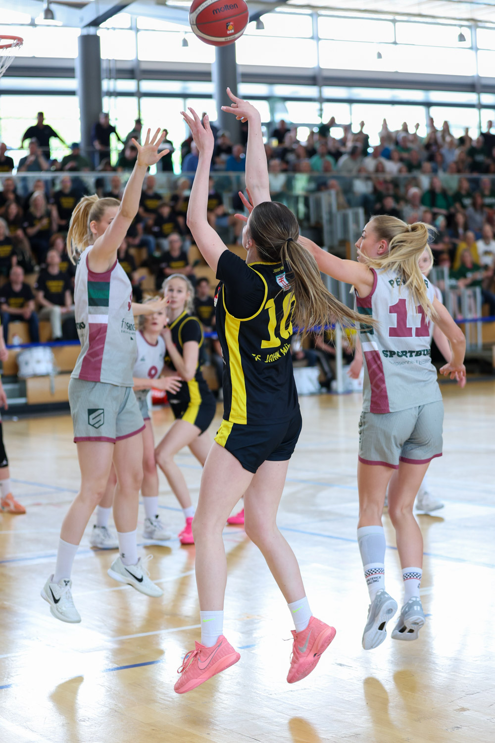 Im zweiten Viertel kommt dann der Moment, der das Spiel kippt: Rosenheim setzt sich zwischenzeitlich auf neun Punkte ab – und dann übernimmt Matilda, die erst vorgestern 15 geworden ist. Mit neun Punkten in diesem Viertel bringt sie uns nahezu im Alleingang zurück ins Spiel und dreht die Dynamik komplett.