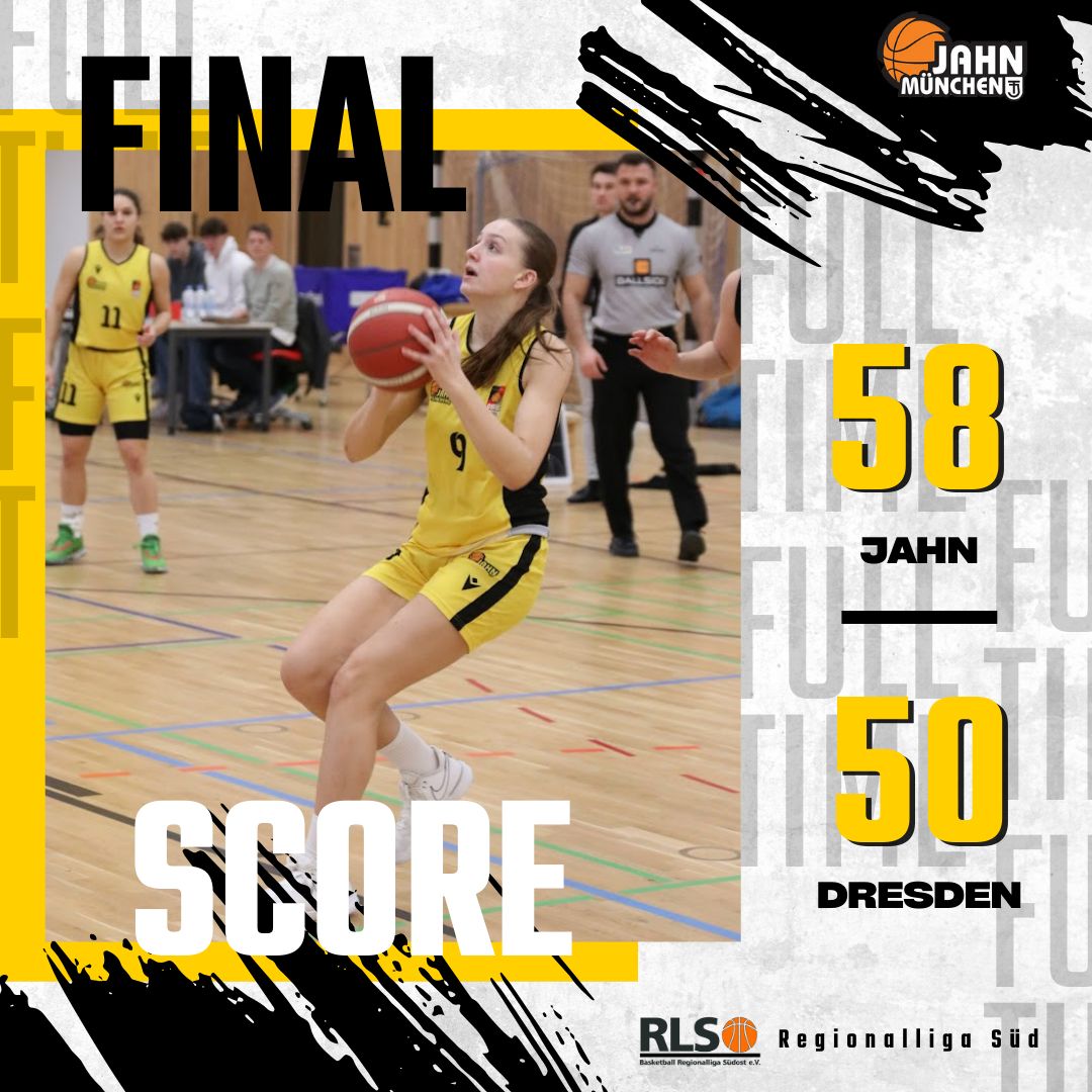 Beiderseits nicht immer fehlerfrei, dafür aber immer umso spannender verlief der Auftakt für Jahns Regionalliga-Damen in die diesjährigen Playoffs gegen den USV TU Dresden. Im ersten von maximal drei möglichen Viertelfinalspielen behielten sie samstags in der heimischen Ruth-Drexel-Schule zum Ende hin knapp mit 58 – 50 die Nerven.