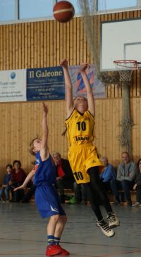 In der ersten Pause wurde dann die Tatsache angesprochen, daß wir durch unsere Größe eigentlich alle Rebounds holen müßten und nicht die kleineren Gegenspielerinnen. Allgemeines Nicken im Team, daß leuchtete irgendwie ein. Gesagt wie getan, im zweiten Viertel lief es dann besser. Anna, Judith und Julia punkteten und mit einem 21:28 Rückstand ging es in die Pause. Nach der Halbzeit griff auch Sophie ins Geschehen ein und konnte sich mehrmals im 1on1 durchsetzen und punkten. Ein 13:2 Lauf brachte kurzzeitig die Führung, dies wurde aber ebenfalls durch einen 10:2 Lauf des Gegners gekontert. Mit 37:41 endete das 3.Viertel.