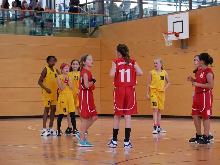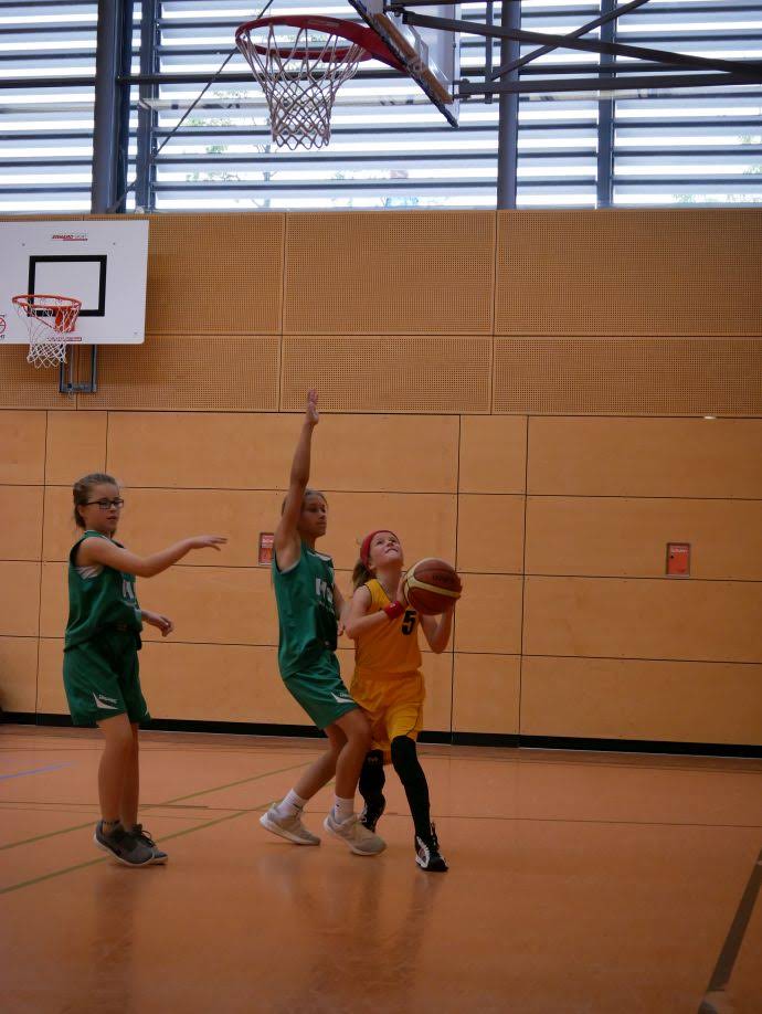 5 weibliche u12 Teams traten an und im ersten Match ging es gleich gegen den Gastgeber, die sogenannten "Hellgirls". So traten sie auch auf, bissig und kämpferisch, was unser Team erstmal ein bißchen überraschte. Die Hellenen gingen in Führung, wir konnten uns in den zweiten 10min aber herankämpfen und, eingeleitet durch lange Pässe von Sophie, durch zwei gut gespielte Fastbreaks 11:6 gewinnen. Aber diese ersten 20min kosteten schon viel Kraft. Im zweiten Spiel wartete dann der ESV Staffelsee, die durch ein sehr ausgeglichenes Teamplay beeindruckten. Wir hatten es dann auch am Anfang schwer und lagen schnell mit 8 Punkten hinten. Penelope und Judith konnten sich aber doch immer mal wieder im "1 gegen 1" durchsetzen und punkten. Unsere Großen, Aliya und Ajla, holten sich immer mehr Rebounds. Am Ende mußten wir uns aber 12:22 geschlagen geben.