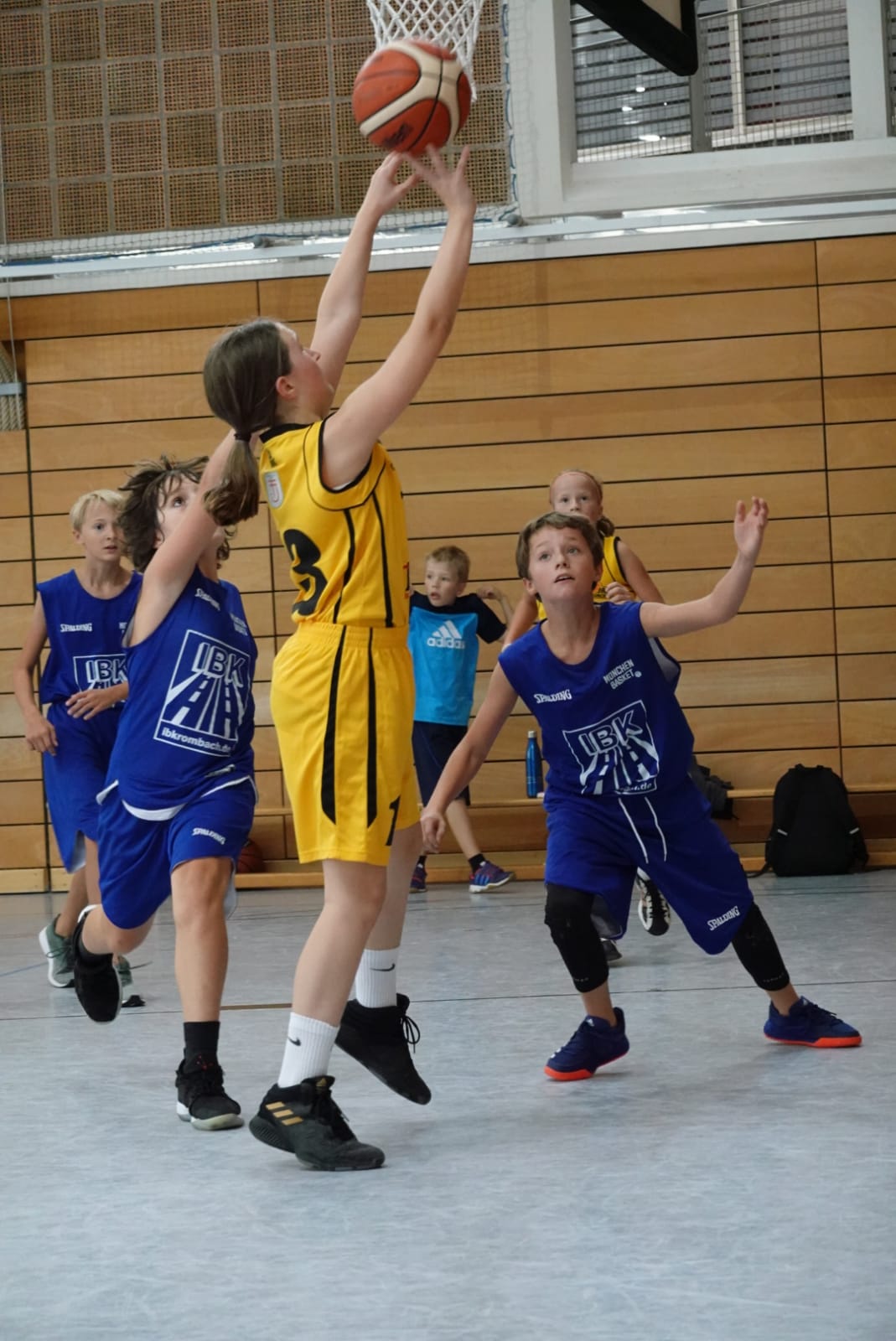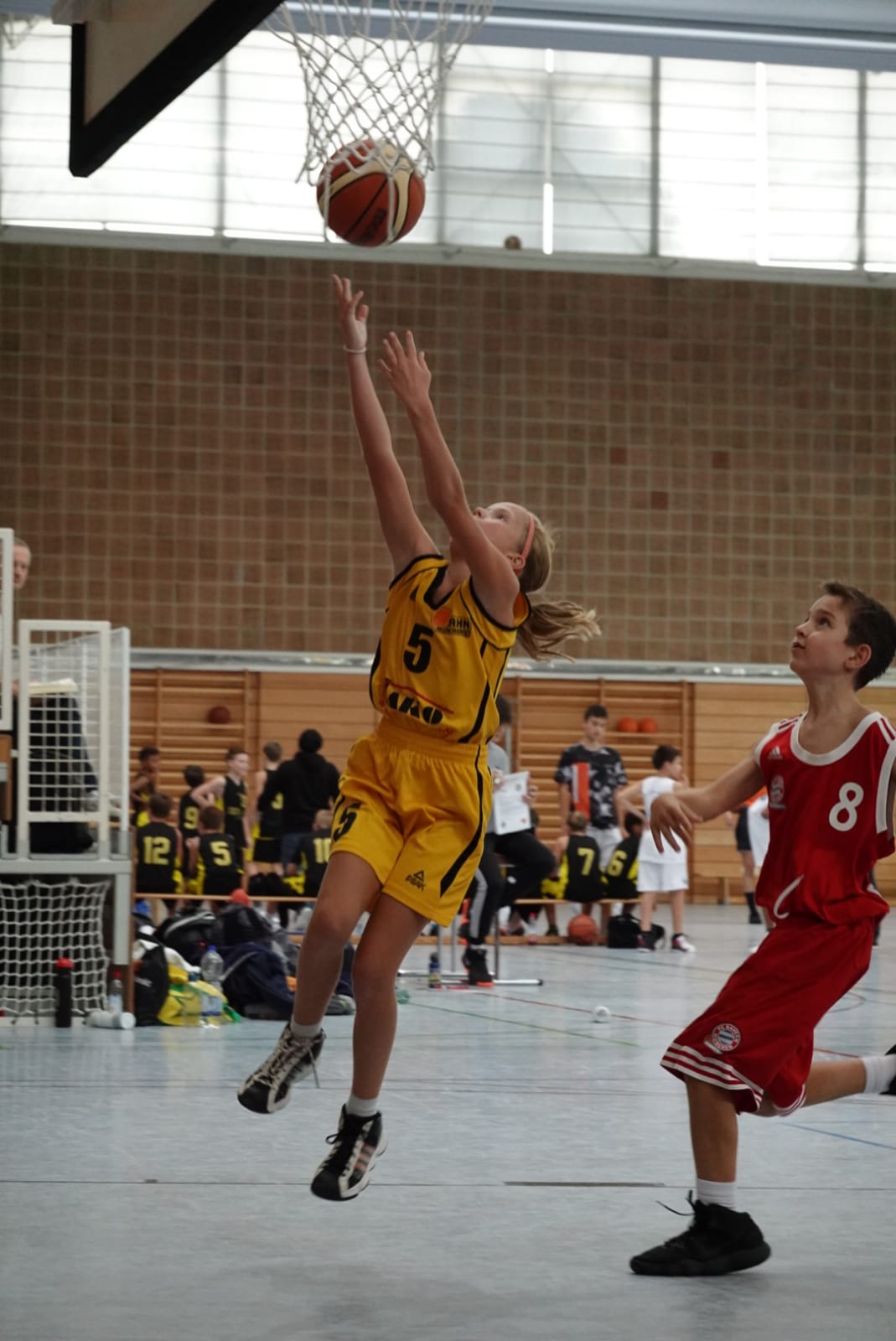 Es wurde in zwei Gruppen a 5 Teams gespielt, jeder gegen jeden. Die Freisinger Mädls und wir vom Jahn waren die einzigen weiblichen Teams am Start zwischen 8 weiteren Jungs-Teams aus der Bezirks- bzw. Kreisliga. Los ging es gegen Ismaning und der Start wurde komplett verschlafen. Mit 10:26 gab es eine recht deutliche Niederlage, was Captain Anna und Coach Lars zu einigen deutlichen Worten nach Spielende verleitete. Alle legten nun eine Schippe Mut und Engagement drauf, so daß das zweite Spiel gegen München Basket mit 14:12 gewonnen wurde. Im dritten Spiel warteten dann die Jungs vom FC Bayern und es wurde ein heiß umkämpftes Match. Die Bayern hatten recht schnell die Teamfoulgrenze erreicht, so daß die Jahnler zu einigen Punkten kamen, die dann letztlich den Ausschlag zum 13:10 Sieg geben sollten. Großer Jubel im Team, jetzt waren alle hellwach und bis in die Haarspitzen motiviert.