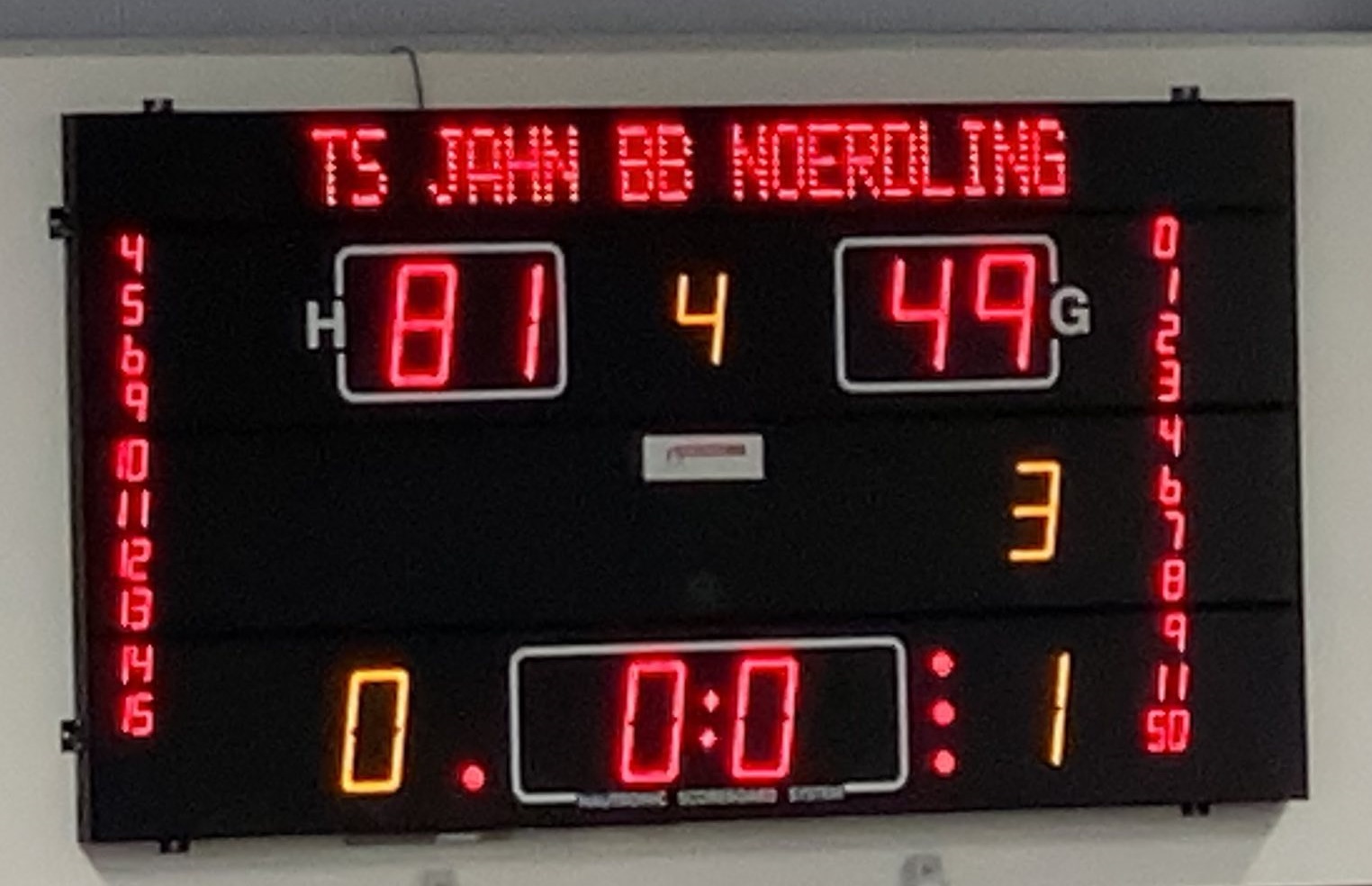 Dann Sonntag der Hauptevent, Bayernligaspiel u14 gegen Nördlingen. Das letzte Spiel der Hinrunde, die Weste sollte weiter porentief rein bleiben. Aber der Gegner kam mit 3 Auswahlspielerinnen, darunter eine frischgebackene u15 Nationalspielerin. Jahn nur mit einer Nominierung auf Landesebene, eigentlich klare Verhältnisse. Naja, die waren es dann auch, aber zu Gunsten der Gastgeber. Das schnelle Spiel der Jahndamen konnte der Gegner nur teilweise mitgehen, immer wieder wurden Fastbreaks von Silvia oder Isabelle sicher abgeschlossen. Selbst ohne Captain Eva, die leider mit Fieber im Bett lag, wurde der Ball von Alicia und Joana sicher über die Mittellinie gebracht. Letztere wurde mit 22 Punkten Topscorerin der Partie und glänzte auch aus der Distanz mit zwei sehenswerten Dreiern. Auch Alicia traf 2x von "Downtown". Mit +14 nach dem 1.Viertel und +19 zur Halbzeit wurde ein komfortabler Vorsprung herausgespielt, so daß in der zweiten Halbzeit auch die Bankspieler viel Spielzeit bekamen. Am Ende ein 81:49 Sieg und damit ungeschlagen Wintermeister der Hinrunde!