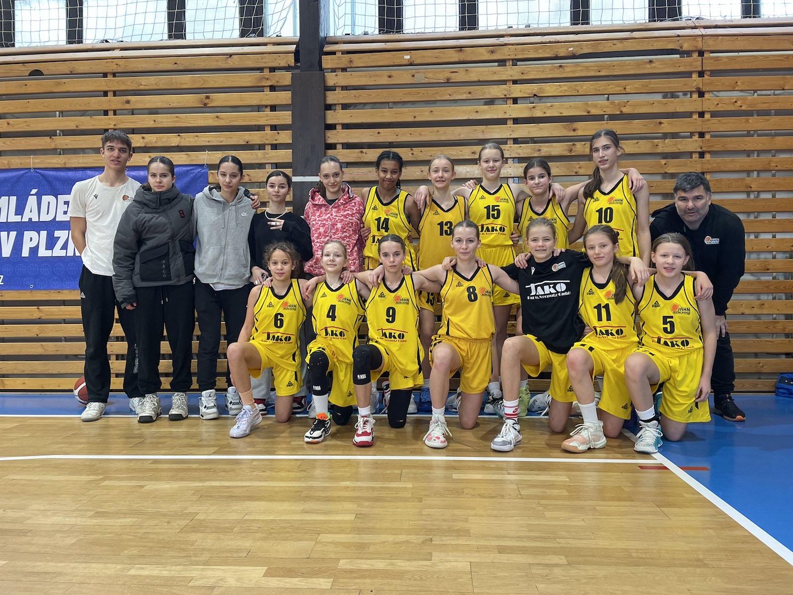 Vom 27.12 bis zum 30.12 fuhr die u14w des Jahn mit ihren Coaches Lars und Nico mit dem Zug nach Pilsen auf das Christmas Turnier. In München ist der Zug jedoch erstmal ausgefallen, die Anreise dauerte dann statt geplanter 4h über 7h. Da fast alle Mädchen dabei waren, traten wir mit zwei Teams an. Die Jüngeren 2011er (quasi die u13) in der u14 Gruppe, die älteren 2010er in der u16 Gruppe. In jeder Gruppe wurde mit 7 Teams jeder gegen jeden gespielt, insgesamt also 12 Spiele in 3 Tagen! Zum Auftakt spielte die u14 gegen Langen. Nach anfänglichen Schwierigkeiten wurde ein souveräner Sieg eingefahren. Die u16 startete dann gegen Borotin in das Turnier. Da zeitgleich die u14 gegen Hofheim spielen mußte, traten beide Teams nur mit 7 bzw. 8 Spielerinnen an. Die u16 konnte das Spiel klar für sich entscheiden und zeitgleich gewann die u14 auch gegen Hofheim. Nach einer kurzen Pause, ging es für die u16 weiter gegen DBaK. Nach einer Busfahrt stand man aber erstmal in einer leeren Halle. Coach Lars hatte die tschechischen Straßennamen vertauscht, Mist! Aber mit den schnell organisierten Elterntaxis waren wir dann 5min vor Beginn des Spieles in der richtigen Halle, danke! Auch dieses 4.Spiel am ersten Tag konnte knapp gewonnen werden. Ein 4:0 Start, die Laune war gut.
