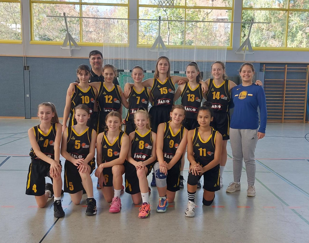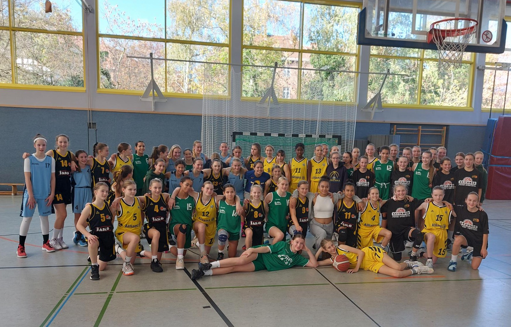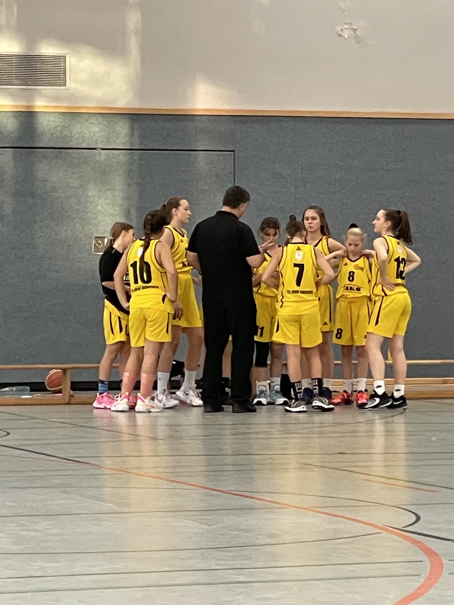 Das wbl u14 Team der Turnerschaft absolvierte im Oktober die Hinrunde mit 5 ungefährdeten Siegen und im Schnitt +60 Punkten recht souverän. Die intensive Vorbereitung mit Trainingslager in Burghausen, etlichen Trainingseinheiten und einer Rekordteilnahme von 18 Spielerinnen im BBV Girlscamp zahlte sich aus. Das Scoring verteilt sich meist auf einen Großteil der Spielerinnen, so daß es gegnerische Teams schwer haben, die Offensive der Jahn Mädls zu stoppen. Damit hatte sich das Team für die Hauptrunde der 6 besten Teams aus Bayern qualifiziert, von denen dann Ende März die 4 Besten die Meisterschaft ausspielen werden. Die kurze Pause in den Herbstferien wurde genutzt, um sich in Berlin mit einigen der besten Teams des Landes zu messen. Neben dem Gastgeber ALBA waren auch noch Lok Bernau und die Basketball Allianz Süd Südwest (B.A.S.S.) aus der Hauptstadt dabei. Und mit der TG Würzburg auch der Hauptkonkurrent aus Nordbayern, die ebenso souverän und ungeschlagen die Hauptrunde erreicht hatten.Mit dem SC Kemmern im 1.Spiel der Hauptrunde kam ein bekanntes Team nach München, hatten doch die 2010er sich erst im Mai in der u12 dem Gegner im Kampf um die bayerische Meisterschaft geschlagen geben müssen. Aber diesmal wurde ein deutlicher Sieg eingefahren, mit 88:43 setzte die Jahntruppe ein erstes Ausrufezeichen in der Hauptrunde.Diesen Samstag kam es dann zum Spitzenspiel in Würzburg. Der Gastgeber als amtierender dt. Meister konnte mit 4 Spielerinnen auflaufen, die frisch vom BBV für ein Länderturnier in Chemnitz nominiert wurden. Auf Seiten des Jahn hatte es nur eine Spielerin geschafft, auf dem Papier also eine recht deutliche Angelegenheit. Aber sofort ab Tip-off konnten die Jahn Mädls einen kleinen Vorsprung erarbeiten, das 1.Viertel wurde mit 20:15 gewonnen. Der Gastgeber konterte aber und und nutzte immer wieder Chancen aus dem Fastbreak, so daß Würzburg mit einer 31:28 Führung in die Halbzeit ging.Das Spiel blieb auch im zweiten Abschnitt hart umkämpft, Jahn haderte mit der Freiqurfquote (magere 17% bei 2/12). Würzburg konnte deutlich öfter an die Linie gehen und traf sicher (62% bei 16/26). Das Spiel schien immer mehr in Richtung des Gastgebers zu kippen. Am Anfang des 4.Viertels dann das 5.Foul unseres Captains Eva. 5min vor Schluß dann schon mit 7 Punkten hinten und 3min später holte sich auch Topscorerin Silvia ihr 5.Foul ab. Doch das alles schien beim Rest des Teams nochmal eine Trotzreaktion auszulösen. Auf einmal wurden Bälle geklaut und die Korbleger sicher verwandelt. 90sec for Schluß dann wieder Isabelle mit energischem Drive zum Korb, Ausgleich zum 56:56. Alicia krönte ihre tolle Leistung an diesem Tag dann mit weiteren zwei Punkten. Noch 33sec auf der Uhr, Würzburgs Topscorerin Laura zog zum Korb und wurde gefoult, zwei Freiwürfe. Auszeit Jahn, jetzt saß niemand mehr in der Halle. Erster Freiwurf daneben, zweiter drin. Die restlichen 13sec brachte Joana den Ball sicher über die Mittellinie und als der Schlußpfiff dann den 58:57 Sieg besiegelte, kannte der Jubel bei Jahn keine Grenzen. Damit ist man als einziges ungeschlagenes Team an der Spitze. Aber wie heißt es so schön: "Man sieht sich immer zweimal im Leben". So auch im Basketball, wenn Anfang März die Würzburger in die Landeshauptstadt reisen. Dort wird dann entschieden, wer als Erster der Hauptrunde die Meisterschaft austragen darf. Mark your calenders!