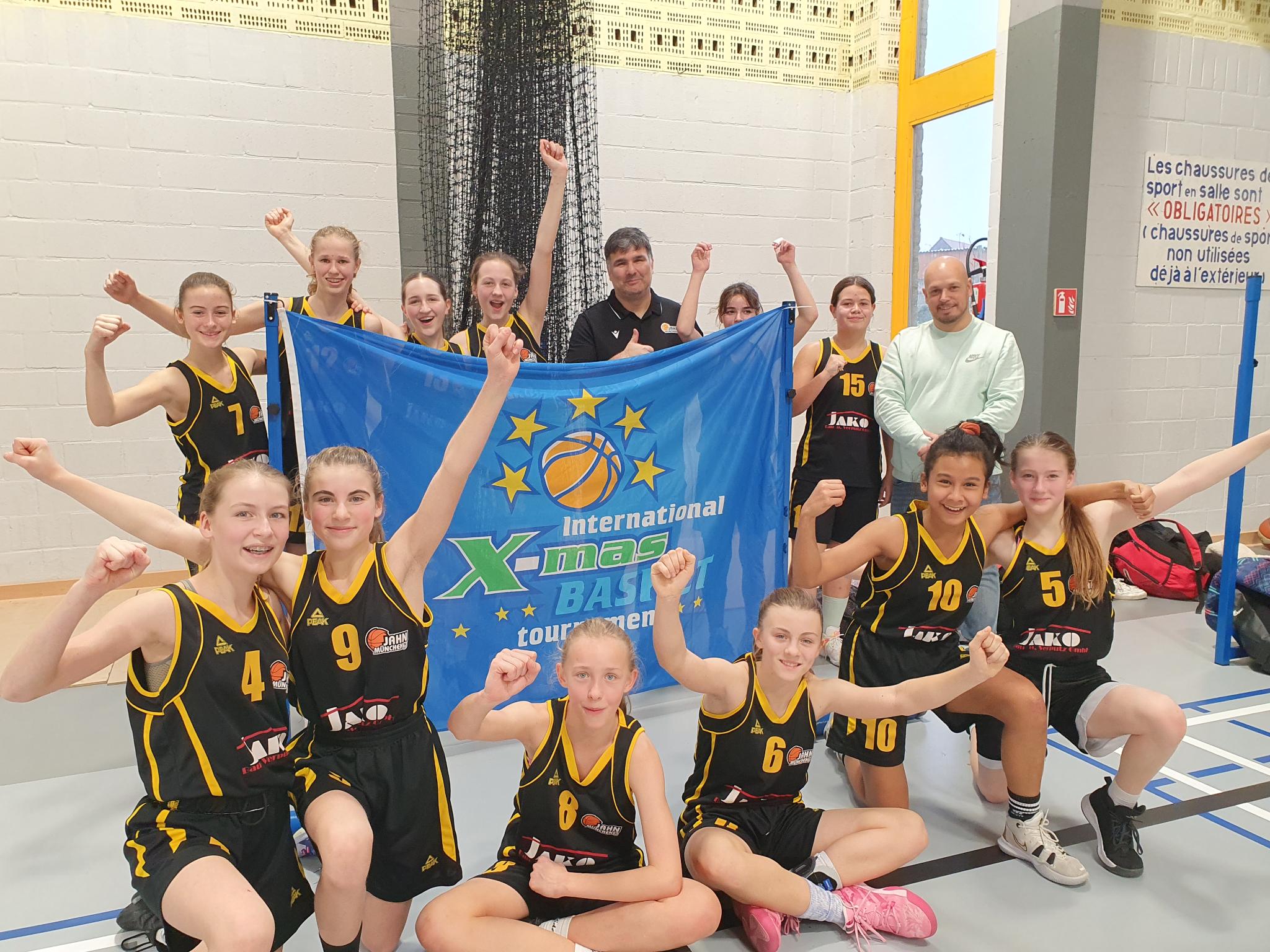 Damit stand fest, wir müssen am letzten Tag früh aufstehen, da das Spiel um Platz #3 schon um 9Uhr angesetzt war. Aber alle standen pünktlich zur Abfahrt bereit, nur den Assistent Coach hatte man vergessen. Kein Problem, der Bus hat gewartet. Gegen Kortrijk Spurs 1 ging es gut los, die Würfe fanden ihr Ziel, die freien Korbleger zum großen Teil sicher verwandelt. Toll auch die Unterstützung durch unsere Jungs, die ihr Spiel um den 3.Platz gleich nach uns haben sollten. Nach der Halbzeit schmolz der Vorsprung aber wieder bis auf 3 Punkte. Auszeit und nochmal klargemacht, daß man bitte den Gegner nicht höflich zum Korb durchwinken sollte, sondern sich mutig in den Weg stellt. Hatten dann wohl alle verstanden und mit einem 4-Pkt-Spiel (Dreier mit Foul) sorgte Johanna für die Entscheidung. Abpfiff und großer Jubel, Platz #3 von insgesamt 16 Teams ist ein tolles Ergebnis.