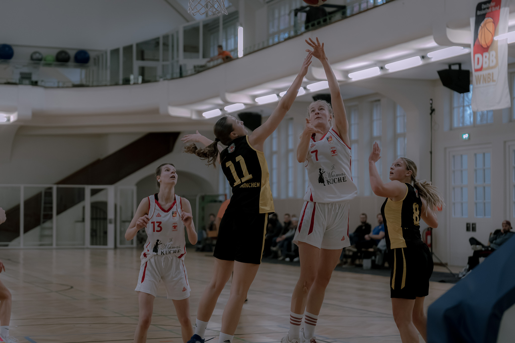 An diesem Tag ohne ihre spielstarken Vertreterinnen aus Rheinland-Pfalz angetreten, hatte auch die neben Krstanovic abermals gut aufgelegte Jana Schreiner (21 / 10) diesem letzten Münchner Aufbäumen final nichts mehr entgegenzusetzen. So sehr das Pendel im Rebounding insgesamt knapp zu Gunsten des Konsortiums in Summe bestehend aus Athletinnen unter anderem aus Stuttgart, Speyer und eben Schwäbisch-Hall ausschlug, hielten vor allem die relevanten davon den Jahn Mitte des zweiten Viertels spielentscheidend in der Partie. Getragen von immer aufmerksamer werdender Verteidigungsarbeit und daraus resultierenden zusätzlichen Korb-Abschlüssen war so der Grundstein gelegt für den dritten Saisonsieg im laufenden Spielbetrieb der Mädchen-Bundesliga WNBL.
