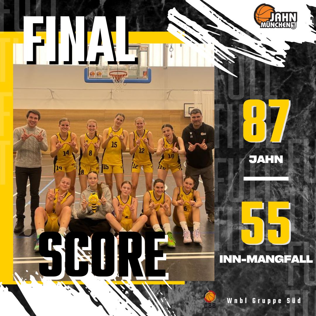 Das sportlich größtmögliche Geschenk legten sich Jahns U18-Korbjägerinnen vorzeitig zum dritten Advent bereits selbst unter den Weihnachtsbaum. Im Aufeinandertreffen mit der SG Inn – Mangfall Baskets behalten die Hausherrinnen schlussendlich mit 87 – 55 die Oberhand.
