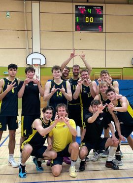 04.11 04.11.2025 12:52 von Hagen Schmidt Schon wieder ein erfolgreiches Herren1-Derby 89:61 (60:33) Derbysieg vor 400 Zuschauern und erstmals mit Buzzer Bee im Supporting Staff mehr