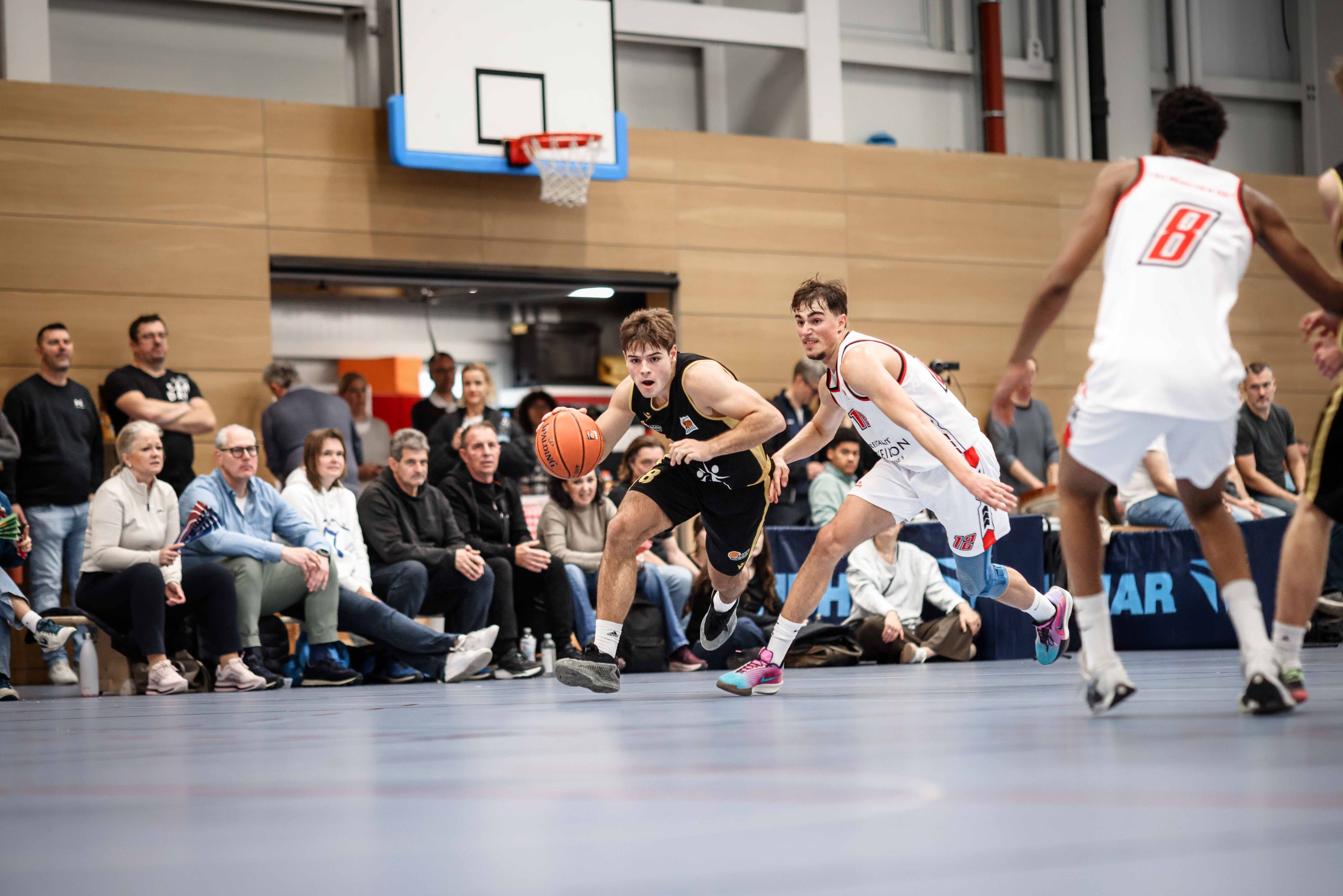 Die Anfangsphase gehörte den Gastgebern, die sich mit sehr druckvollem Spiel eine 9-Punkte-Führung in den ersten 10 Minuten erarbeiteten (23:14). Doch das hochintensive und teils ungestüme Auftreten hatte seinen Preis. Zahlreiche Fouls belasteten früh die Leistungsträger, zudem ging zum Ende der ersten Halbzeit die Puste aus gegen eine Jahn-Mannschaft, die konsequent durchrotierte. Die Gäste kämpften sich zurück, gingen mit einem Dreier des starken Bennet Hein (19 Punkte) kurz vor der Pause sogar in Führung (36:37).