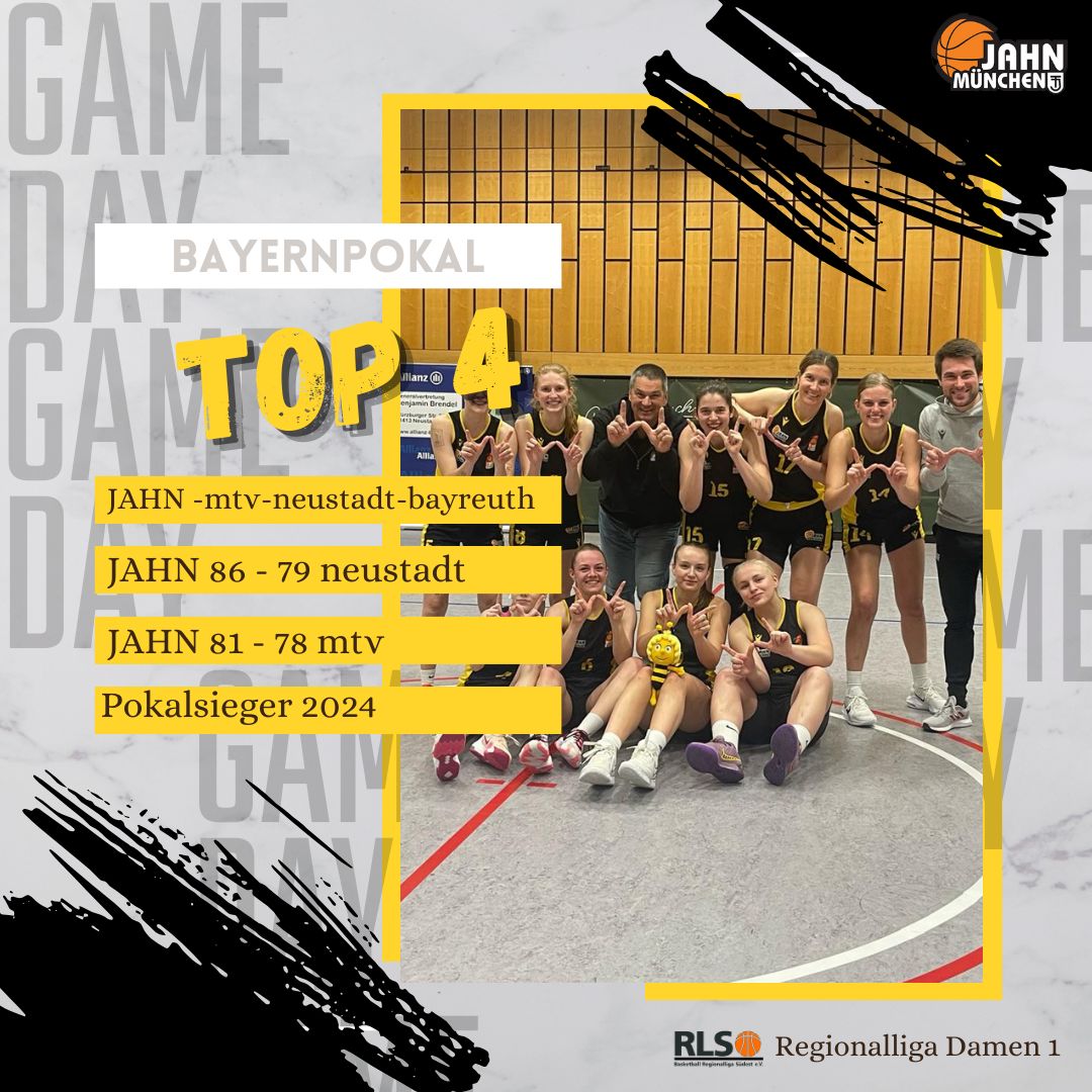 In zwei teils dramatischen Entscheidungsspielen ziehen Jahns Regionalliga-Basketballerinnen jeweils hauchdünn ihren Kopf aus der Schlinge. Somit steht am Ende eines kurzfristig angepassten Dreier-Turniers dann der sicher auch etwas glückliche aber doch hart erarbeitete Gewinn (86 – 79 n.V. & 81 – 78) des diesjährigen Bayernpokals der Damen zu Buche.