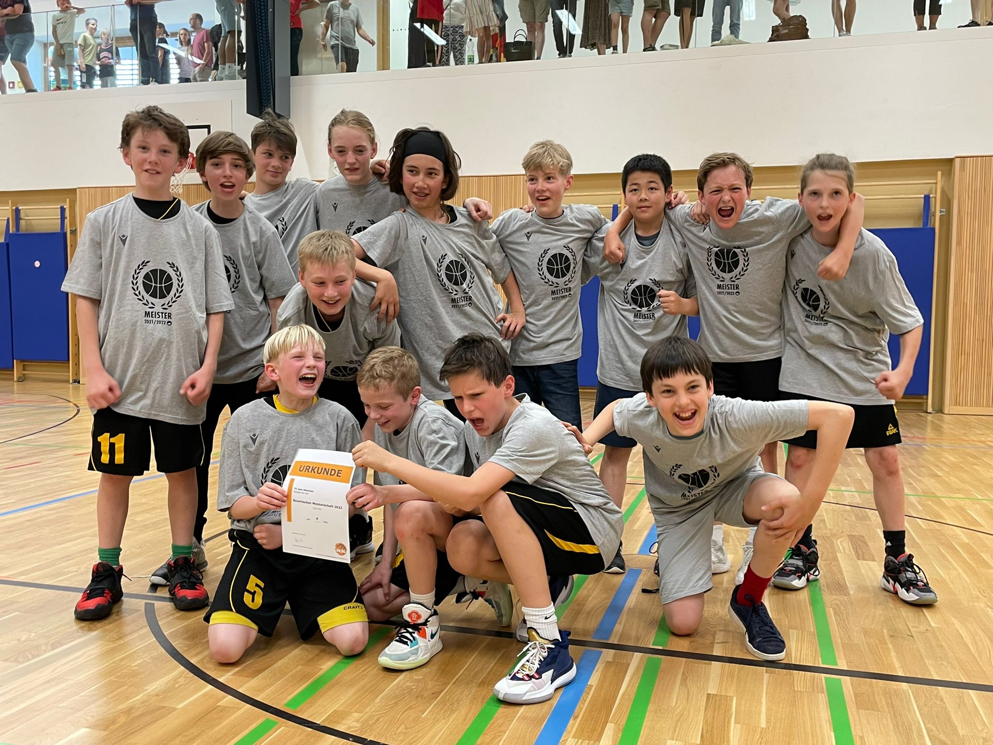 Nachdem die U12 die Bezirksoberliga auf dem zweiten Platz abgeschlossen hatte, durfte sie zur südbayerischen Meisterschaft nach Eichstätt fahren. Dort wartete im Finale um den Titel erwartungsgemäß der Fußballclub (wer auch sonst). Beide Mannschaften waren für die bayerische Meisterschaft qualifiziert, insofern galt es für die Coaches, genau abzuwägen - würde man gewinnen, müsste man die bayerischen Meisterschaften ausrichten, eine große Ehre, aber auch mit einigem Aufwand verbunden, und die Bayern wären gewarnt, dass Jahn auch richtig gut Körbe schmeißen und verhindern kann. Die andere Option wäre, Bayern in Sicherheit zu wiegen und zu verlieren und dann erst beim nächsten Turnier zu zeigen, was in jedem Spieler steckt. Nach langem Hin und Her entschieden die Coaches, dass Jahn gewinnen soll, aber bitte nicht zu hoch. Dieser Wunsch wurde von den Spielern klaglos akzeptiert und perfekt umgesetzt, Jahn wurde mit 68:67 gegen Bayern südbayerischer Meister.