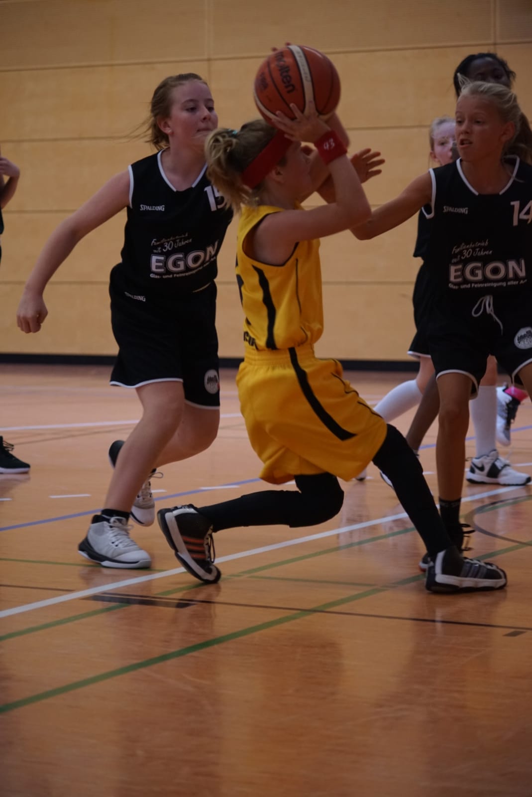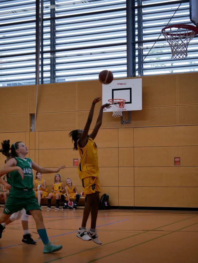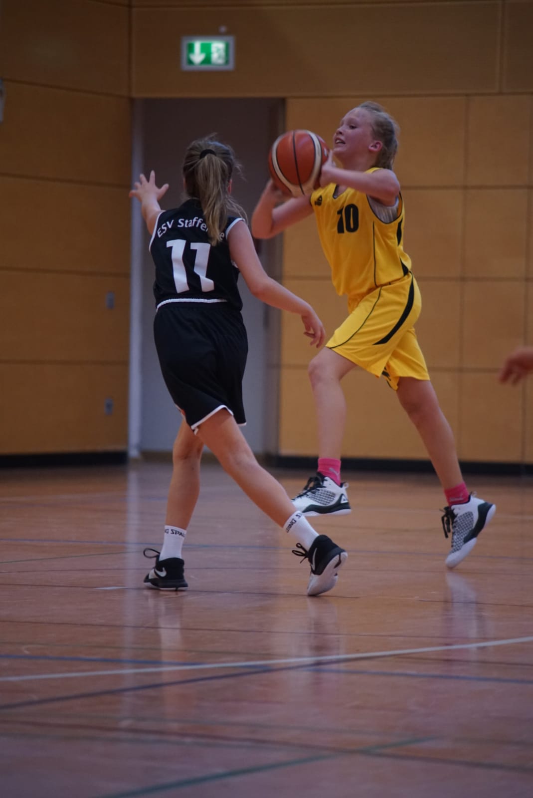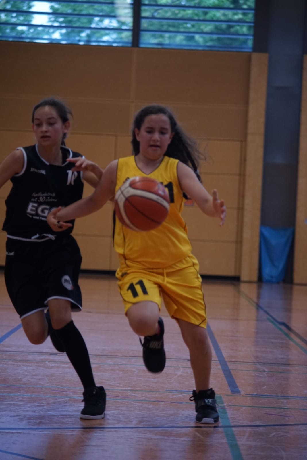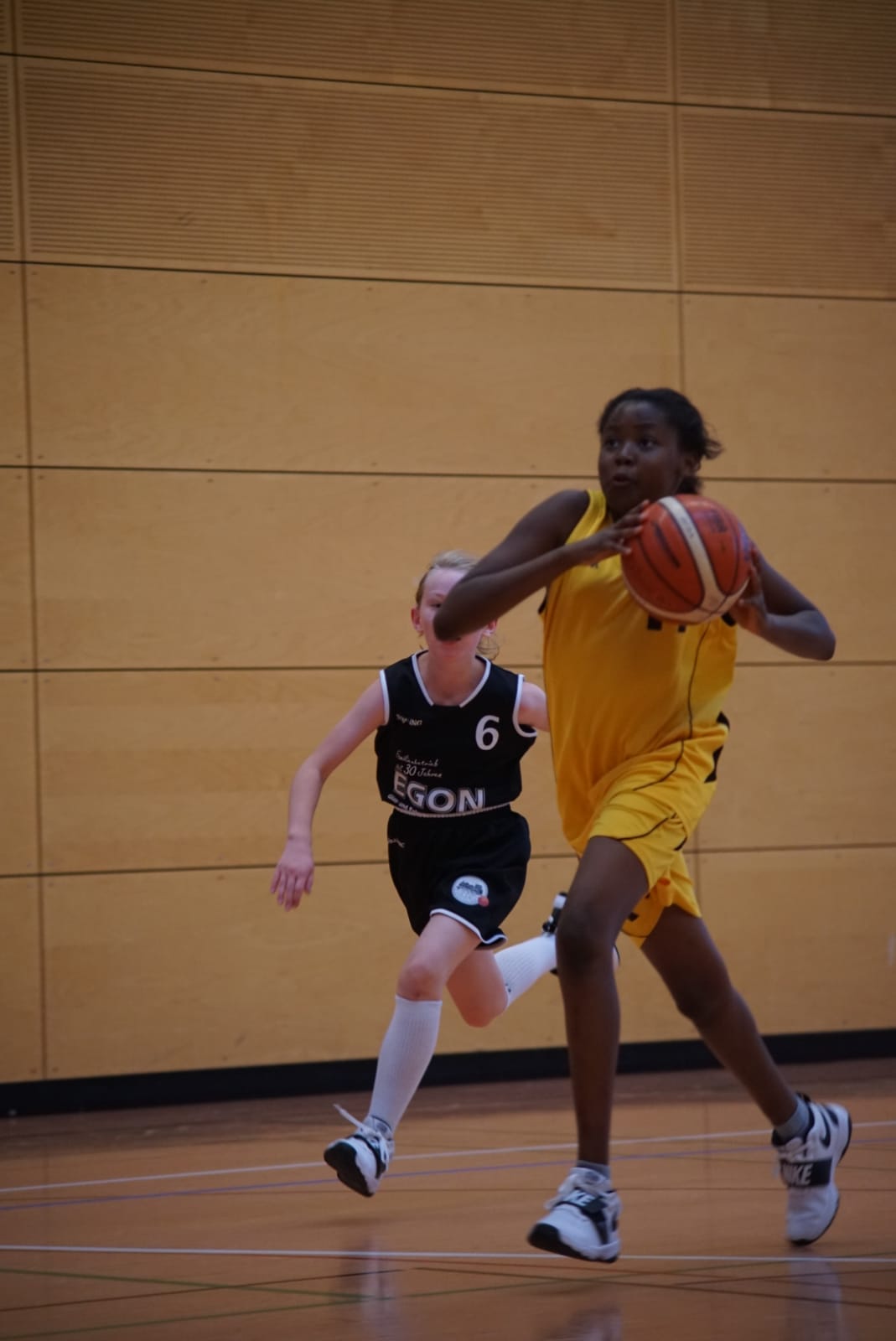 5 weibliche u12 Teams traten an und im ersten Match ging es gleich gegen den Gastgeber, die sogenannten "Hellgirls". So traten sie auch auf, bissig und kämpferisch, was unser Team erstmal ein bißchen überraschte. Die Hellenen gingen in Führung, wir konnten uns in den zweiten 10min aber herankämpfen und, eingeleitet durch lange Pässe von Sophie, durch zwei gut gespielte Fastbreaks 11:6 gewinnen. Aber diese ersten 20min kosteten schon viel Kraft. Im zweiten Spiel wartete dann der ESV Staffelsee, die durch ein sehr ausgeglichenes Teamplay beeindruckten. Wir hatten es dann auch am Anfang schwer und lagen schnell mit 8 Punkten hinten. Penelope und Judith konnten sich aber doch immer mal wieder im "1 gegen 1" durchsetzen und punkten. Unsere Großen, Aliya und Ajla, holten sich immer mehr Rebounds. Am Ende mußten wir uns aber 12:22 geschlagen geben.