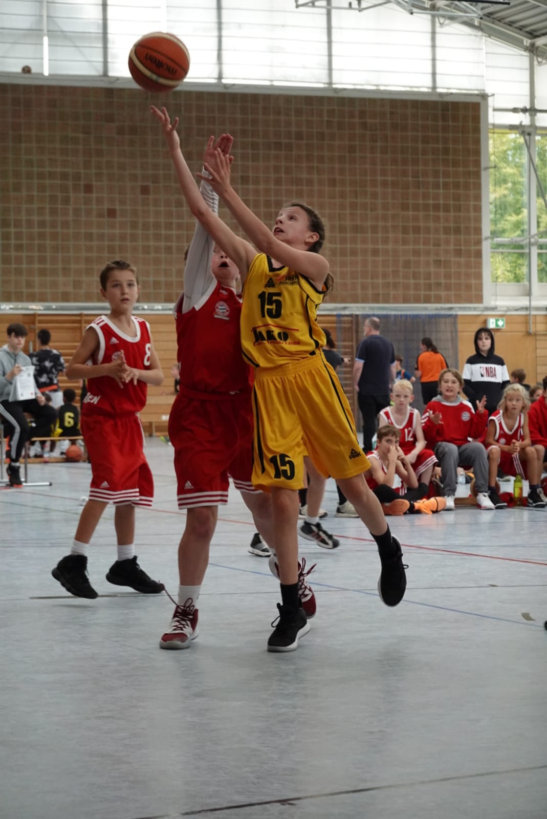 Es wurde in zwei Gruppen a 5 Teams gespielt, jeder gegen jeden. Die Freisinger Mädls und wir vom Jahn waren die einzigen weiblichen Teams am Start zwischen 8 weiteren Jungs-Teams aus der Bezirks- bzw. Kreisliga. Los ging es gegen Ismaning und der Start wurde komplett verschlafen. Mit 10:26 gab es eine recht deutliche Niederlage, was Captain Anna und Coach Lars zu einigen deutlichen Worten nach Spielende verleitete. Alle legten nun eine Schippe Mut und Engagement drauf, so daß das zweite Spiel gegen München Basket mit 14:12 gewonnen wurde. Im dritten Spiel warteten dann die Jungs vom FC Bayern und es wurde ein heiß umkämpftes Match. Die Bayern hatten recht schnell die Teamfoulgrenze erreicht, so daß die Jahnler zu einigen Punkten kamen, die dann letztlich den Ausschlag zum 13:10 Sieg geben sollten. Großer Jubel im Team, jetzt waren alle hellwach und bis in die Haarspitzen motiviert.