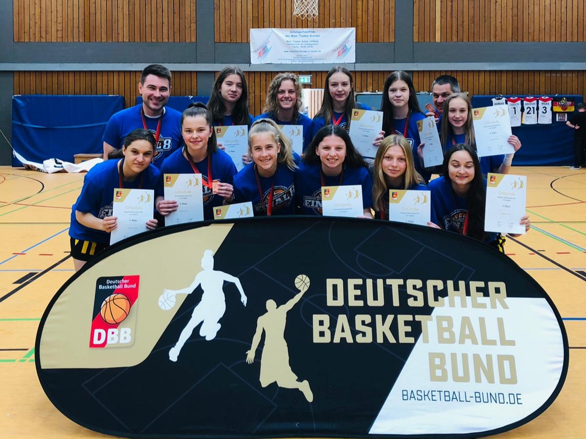 Wir belegen den dritten Platz der weiblichen U16 Deutschen Meisterschaft – was für ein Erfolg. Vielen Dank ebenfalls an die Eltern für die laute Unterstützung sowie unseren Busfahrer Ivan – er wusste von Anfang an in welche Richtung es geht!